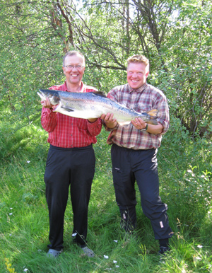 1.7.2010 Rauno Miettinen ja Hemmo Lukander saivat Utskosken alta 4,3 kg lohijalan. |
