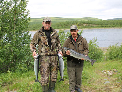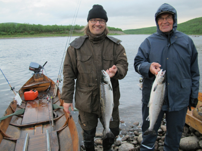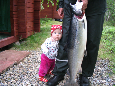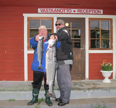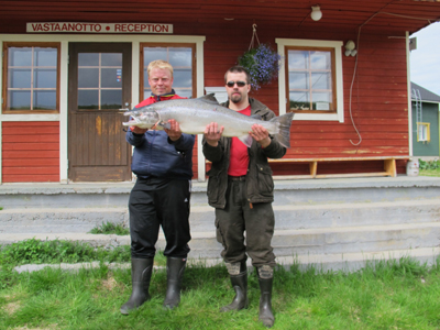 10.8.2012 Risto ja Arto Manni saivat 7,2 kg lohen Utsjoenkoskesta perholla. |