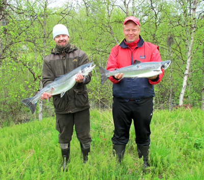 30.6.2012 Jukka Mahlakaarto ja Hannu Kukkonen saivat aamulla 7,5 kg lohen Utskosken alta. |
