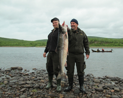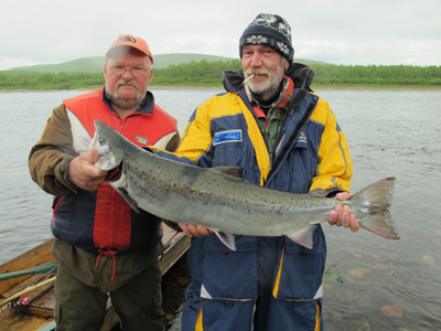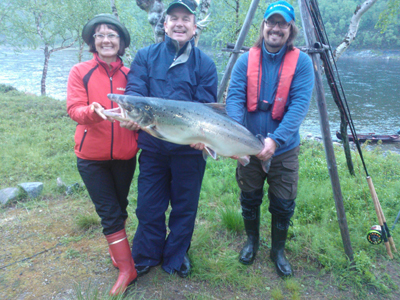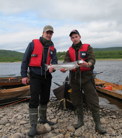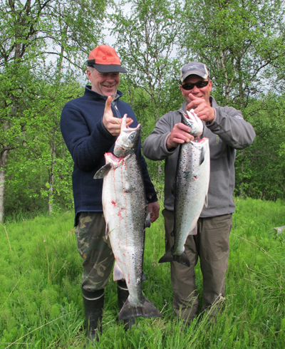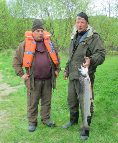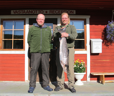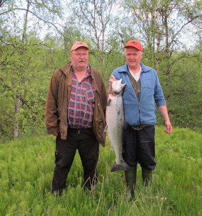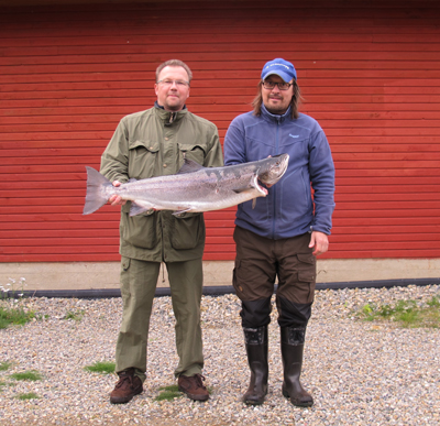 19.6.2012 Pekka Luokkamäki ja Jaakko Korpikoski saivat Utskosken alta 13 kg lohen. |