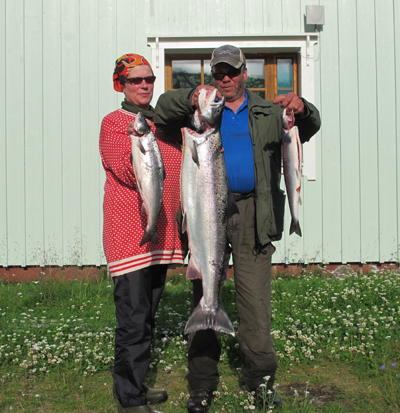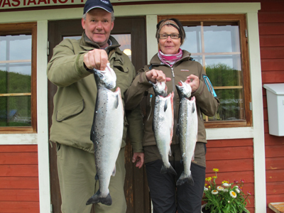 4.7.2012 Teppo ja Siiri Turpeinen saivat Utskosken alta 3,6 kg, 1,2 kg ja 1,6 kg lohisaaliin ja Jarimista 6,5 kg lohen. |