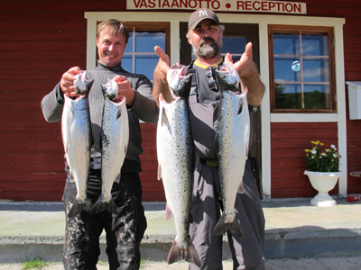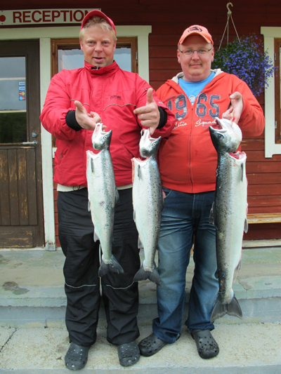 29.6.2012 Ilpo Salminen ja Teuvo Vähätaimi saivat Minnan Perholla 4,6 kg, 7,6 kg, 3,5 kg, ja 1,5 lohet. |
