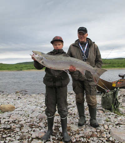 30.6.2012 Valtteri ja Risto Korva saivat 7,5 kg lohen Utsjoenkosken alta aamulla. |