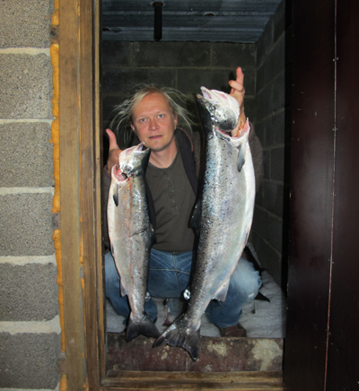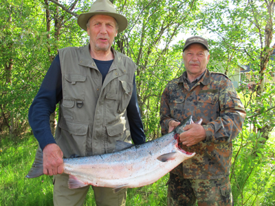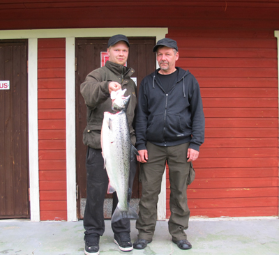 27.6.2012 Taisto Pulju ja Teuvo Marjala saivat Leppäkuopasta 8,5 kg ja 4,7 kg lohet. |