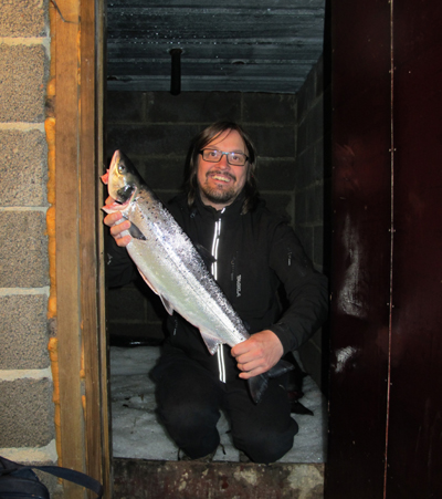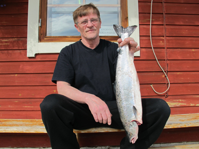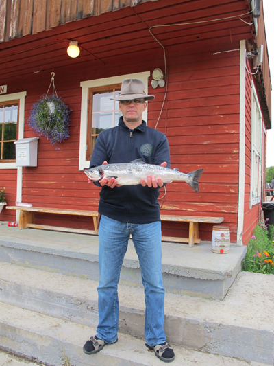8.7.2012 Mika Haataja sai rannalta perholla 12 kg lohen. |