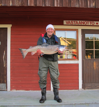 20.7.2012 Jouko Akkanen sai Utsjoenkoskesta perholla rannalta 4 kg lohijalan. |