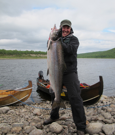 12.7.2012 Jukka Viljanen sai 9,4 kg lohen Karnjargasta perhoa soutamalla. |