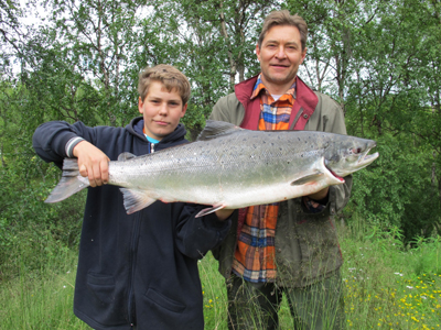 26.7.2012 Oliver ja Veikko Kiljunen saivat 9,8 kg lohen Lossisuvannosta. |