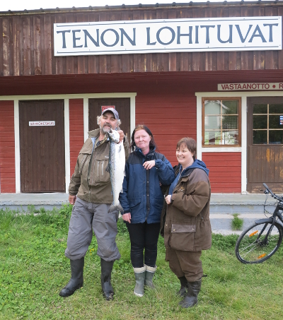 13.8.2014 Veli-Matti ja Jorma Kujala ystävineen kävivät kokeilemassa lohensoutua Sammolin johdolla iltapäivällä. Tuloksena kolmen kilon lohijalka ja meritaimen. |