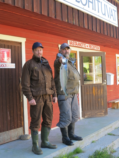 28.6.2014 Jorma Valtanen ja Kusti Mikkonen saivat LohiMosarilla 3,3 kg lohijalan Lossisuvannosta. |