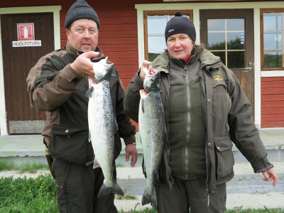 20.6.2014 Marjut ja Jorma saivat Jarimista pari lohijalkaa 3,4 ja 3,7 kg. |