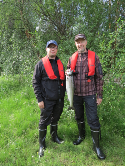 4.7.2014 Teuvo Ahola ja Sami Siponen saivat 4,8 kg lohijalan Utskosken alta. |
