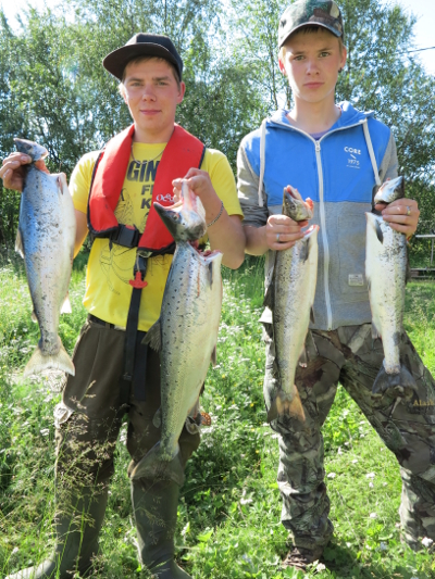 24.6.2014 Luossajuniorit sekä LohiMosari-ryhmä Jorma Valtanen ja Kusti Mikkonen saaliina 1,4 kg titti ja lohijalat 4,1 kg ja 4 kg. |