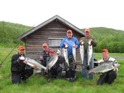 Ähtärin poikien saalis Tenolta. Pienimmät kilosia tittejä ja suurin 8,2 kg lohi. |